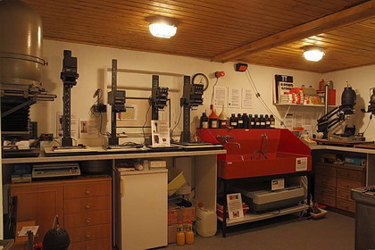 Atelier und Dunkelkammer sind voll funktionsfähig ausgestattet und werden zu gelegentlichen Vorführungen und Kursen genutzt. Ein alter Fotografenhandwerksbetrieb, wie er typisch für seine Zeit war, ist damit dokumentiert. |
